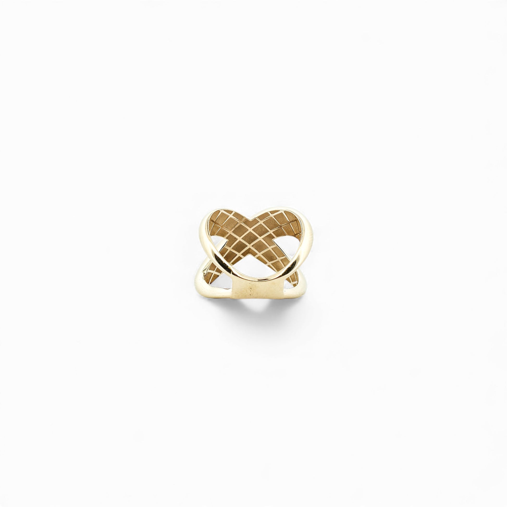 Serafino Armonia - Equis Ring is a sculptural ring that explores the concept of intersection and balance between forms. Fluid volumes meet in a symmetrical composition, creating a refined interplay of solid and void, light and shadow.